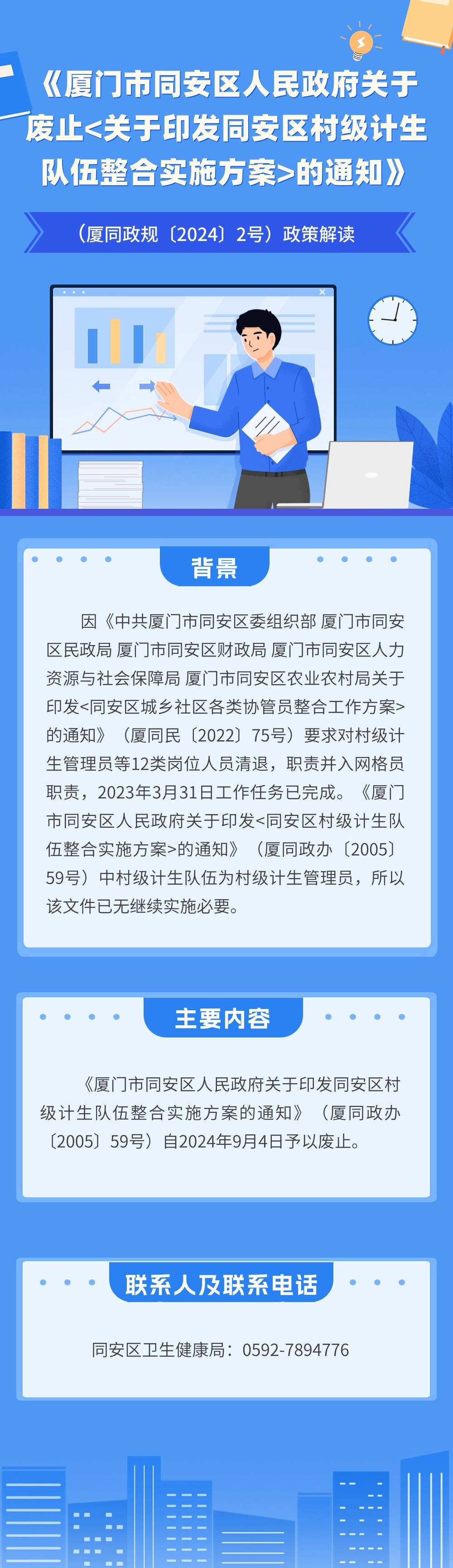 圖解:《廈門市同安區人民政府關于廢止<廈門市同安區人民政府關于印發同安區村級計生隊伍整合實施方案>的通知》