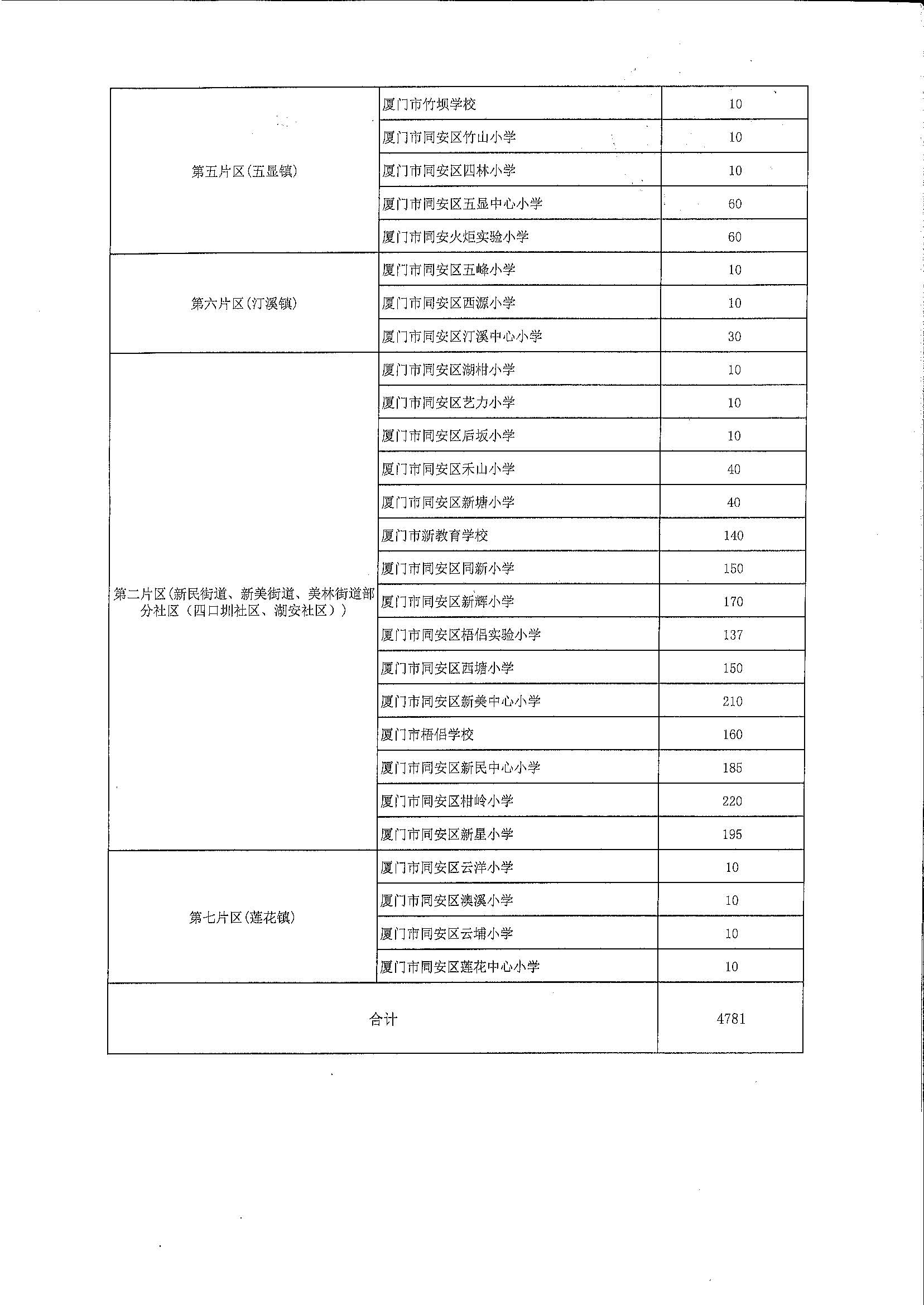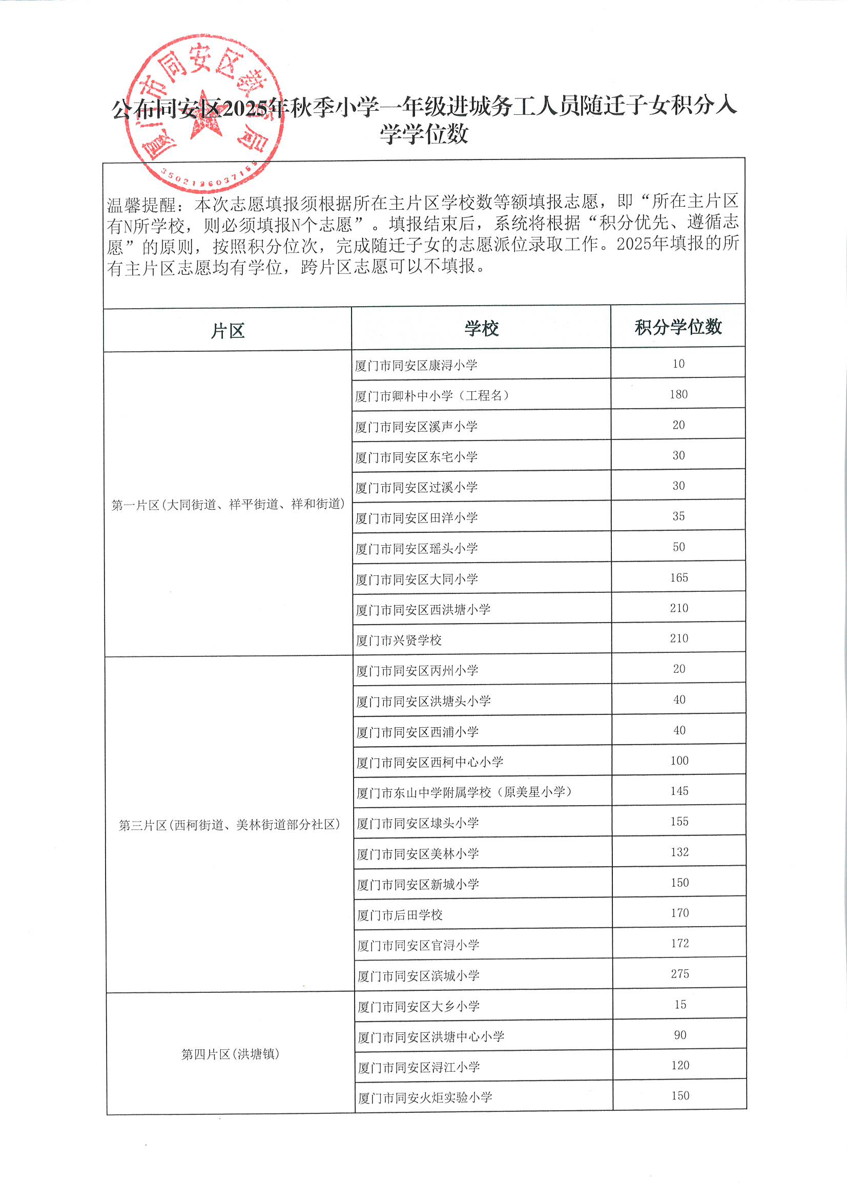 同安區2025年秋季小學一年級進城務工人員隨遷子女積分入學學位數